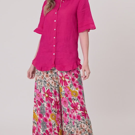 Lemon Tree Camilla Linen Top Fuchsia