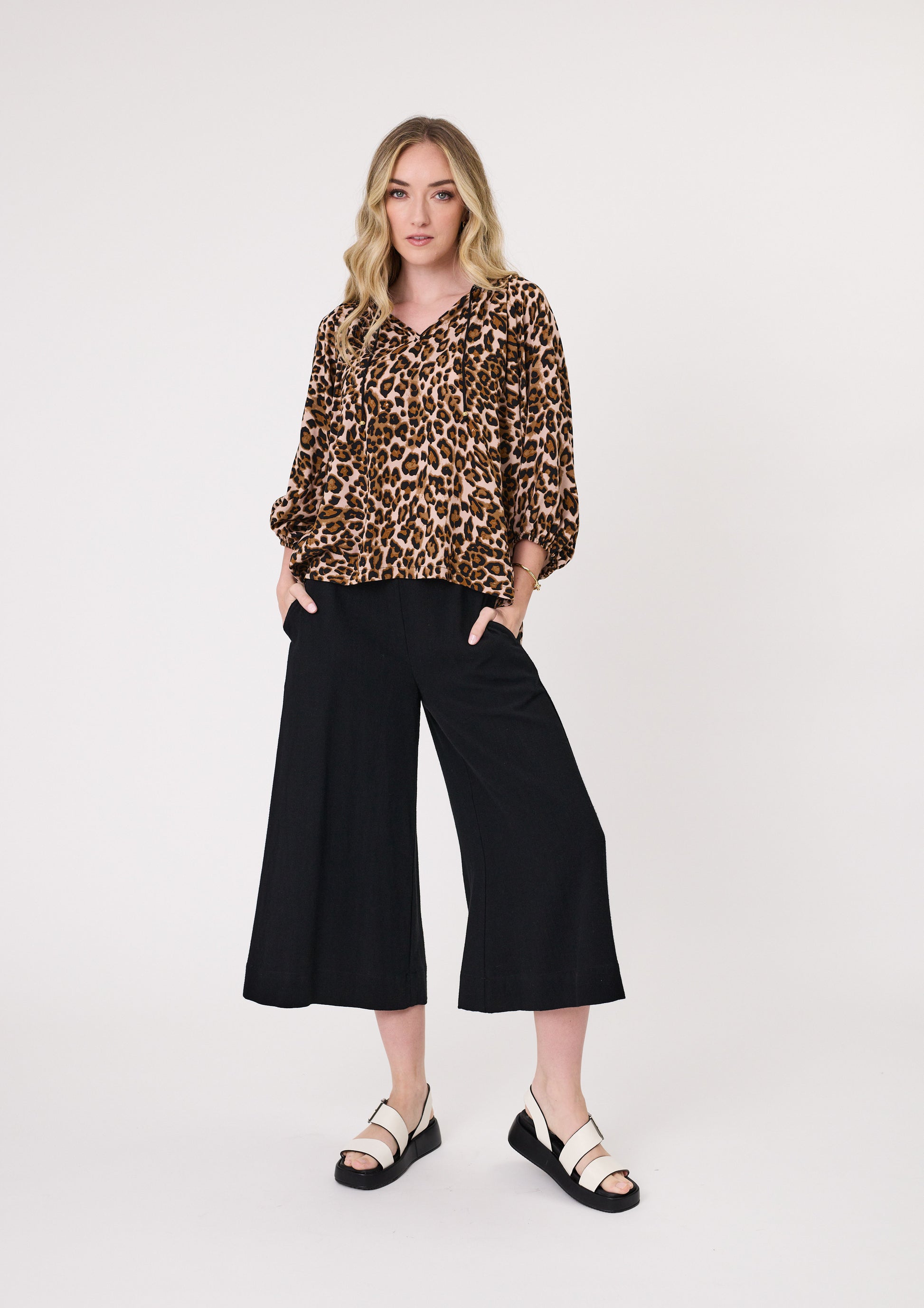 Leopard love is the Lemon Tree Gianna Top in a simple Leopard Print designed with a comfortable loose fit, featuring a flattering V-neckline and easygoing tie strings. Its three-quarter balloon sleeves gently gather at the cuffs for a soft, elegant touch. Made from 100% viscose, this top provides lightweight, breathable comfort you can rely on throughout your day.