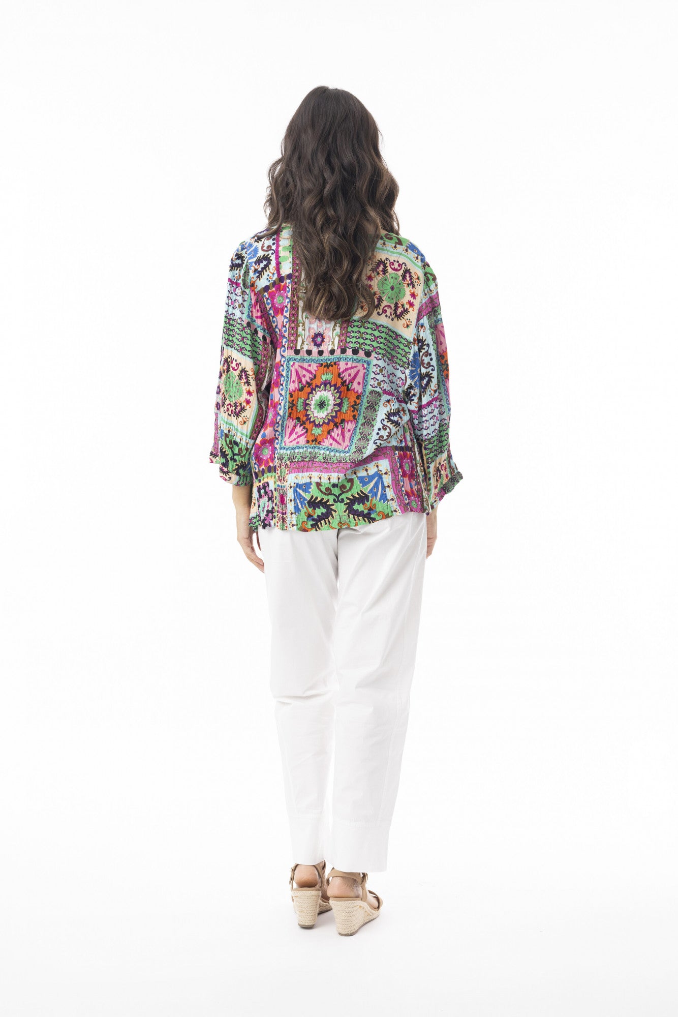The Orientique Sao Bento Top adds a playful twist to your daily style with its light, crepe-look fabric and fun pattern. Its charming round neckline and 3/4 sleeves keep things breezy yet stylish, while the flattering fit flows gently for all-day comfort. Perfect for dressing up or down—pair it with jeans or a skirt and enjoy an easy, effortless look wherever you go. Made from 100% rayon and easy to care for with a cold handwash, this top is your new go-to for casual charm.