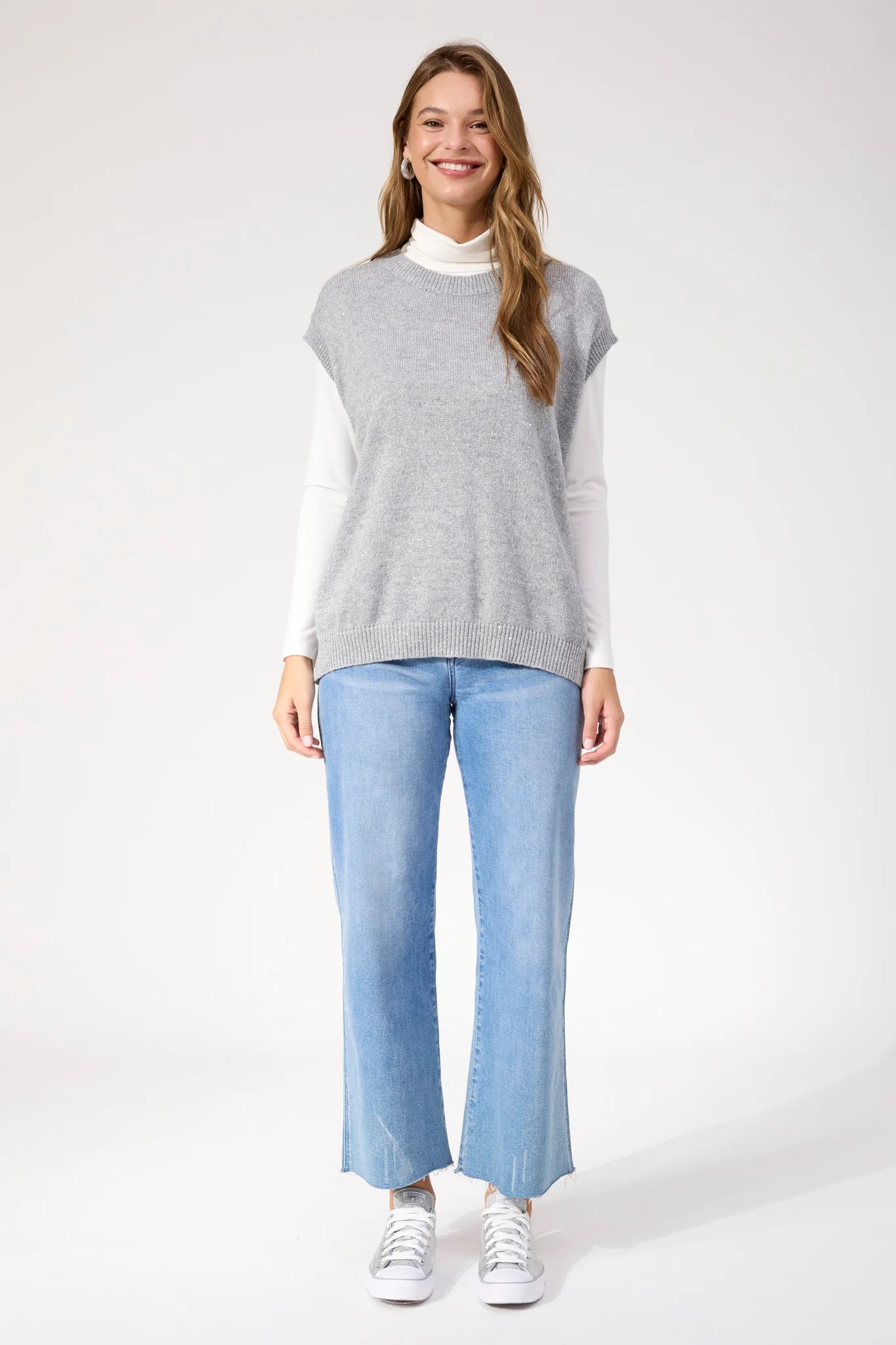 A little sparkle goes a long way. The Salla Sparkle Vest features a soft wool-blend knit with subtle lurex threading and micro sequin detail woven through the yarn. Designed with a relaxed shape and extended shoulders, it layers beautifully over shirts or looks just as good worn solo.