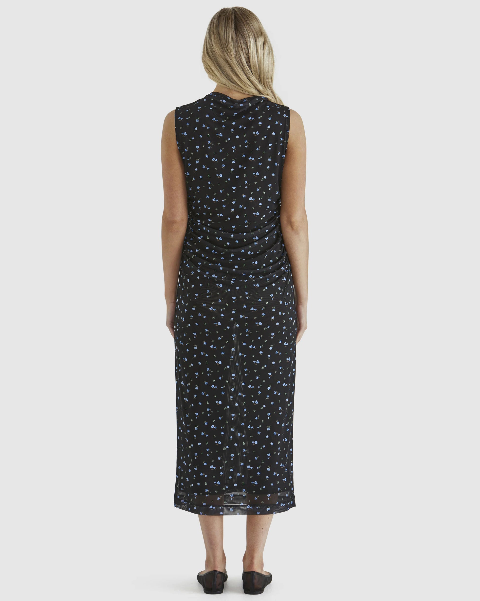 The Lauretta Mesh Dress is an elegant option for evening wear. Its mock neckline, side ruching details, and printed mesh fabric create a fitted silhouette, while the lining ensures a comfortable and flattering fit. Perfect for special occasions or nights out.